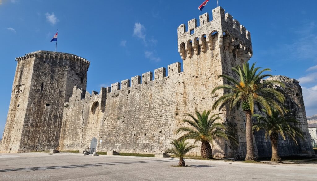 Trogir gehört zu den beeindruckendsten historischen Städten an der kroatischen Adriaküste. Es verbindet reiche Geschichte mit lebendiger Urlaubsatmosphäre. Die Altstadt liegt auf einer kleinen Insel zwischen dem Festland und der Insel Čiovo und zählt zum UNESCO-Weltkulturerbe. Beim Spaziergang durch die engen Gassen eröffnen sich eindrucksvolle Bauwerke aus Antike, Romanik, Gotik und Renaissance. Entlang der Uferpromenade reihen sich Yachten, Restaurants und Bars. Zu den bedeutendsten Sehenswürdigkeiten zählt die Kathedrale des Heiligen Laurentius mit ihrem berühmten Portal von Radovan, einem Meisterwerk mittelalterlicher Bildhauerkunst. Ebenfalls sehenswert sind die Stadtloggia sowie zahlreiche Paläste und Kirchen, die das Stadtbild prägen. Kleine Plätze mit Cafés und Konobas laden zum Verweilen ein. Ein Spaziergang über die Festung Kamerlengo lohnt sich besonders in den Abendstunden, wenn von den Mauern aus der Blick auf Meer, Hafen und Sonnenuntergang fällt. Ebenfalls sehenswert ist der Turm des Heiligen Markus sowie das Benediktinerkloster St. Nikolaus mit seiner bedeutenden Sammlung sakraler Kunst. Auf dem „Grünen Markt“ verkauft man regionale Produkte. Bootsausflüge zu den Blauen Lagunen sind ab Trogir möglich. Carpe Diem!